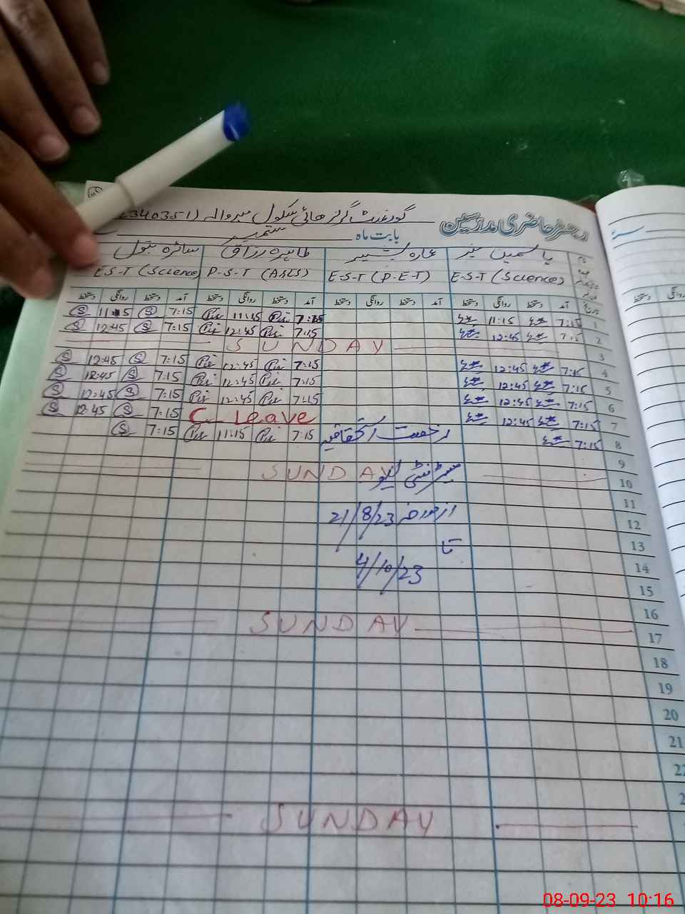 | Leave | Duty | Absent | Maternity | Medical | Ex- Pak |