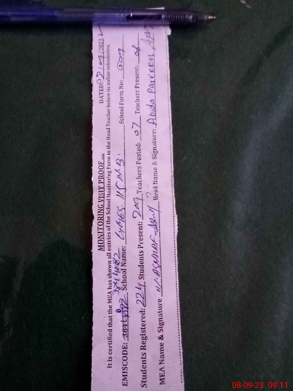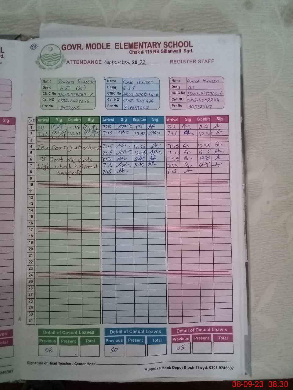 | Name: Ab**** Pa**** Designation: (School Headmaster's/Headmistress's) EST G Phone/Cell Number: 03**** |
