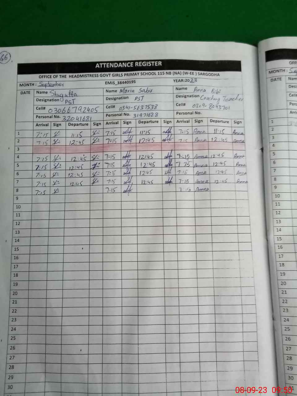 | Name: SH**** Designation: (School Headmaster's/Headmistress's) PST (ARTS) Phone/Cell Number: 03**** |