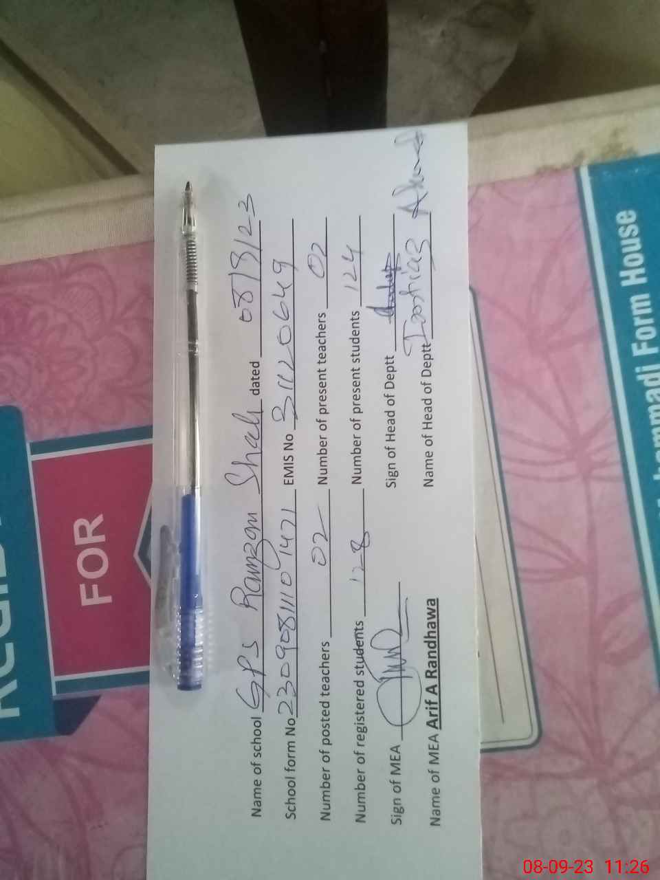 | EMIS Code: 31120649 | Name of School: GPS RAMZAN SHAH | |||