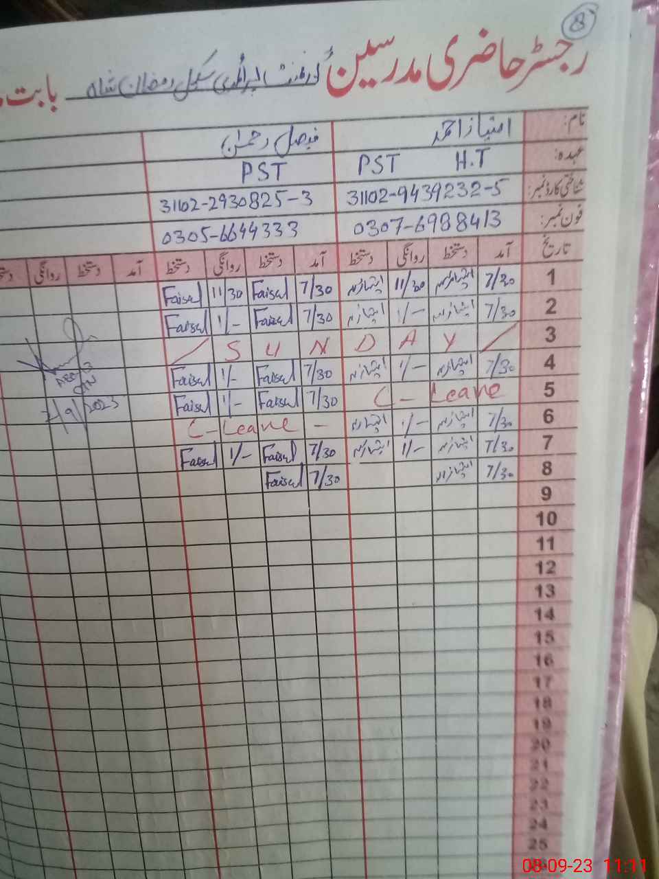 | Name: IM**** AH**** Designation: (School Headmaster's/Headmistress's) PST Phone/Cell Number: 03**** |
