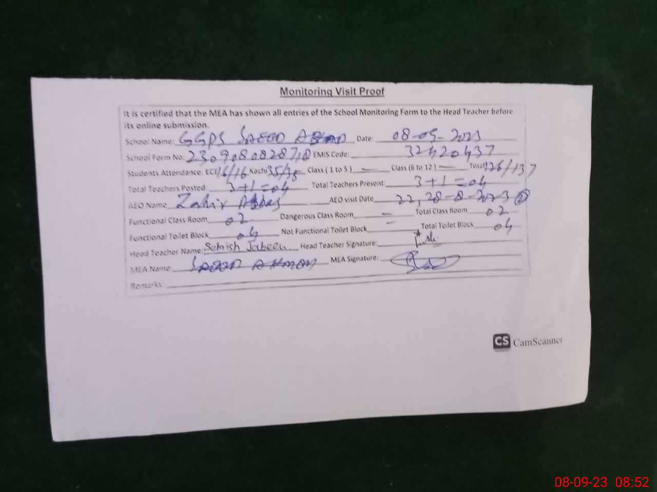 | EMIS Code: 32420437 | Name of School: GGPS SAEED ABAD | |||