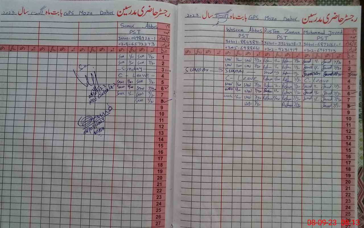 | Name: RU**** ZA**** Designation: (School Headmaster's/Headmistress's) PST Phone/Cell Number: 03**** |