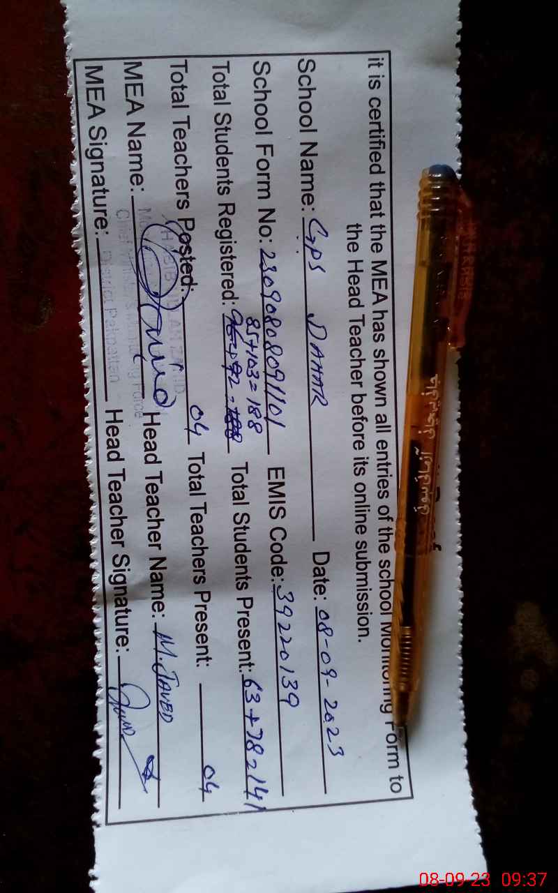 | Attendance Register | Head Teacher | MEA with School | Visit Proof |