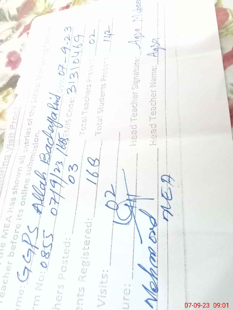 | EMIS Code: 31310469 | Name of School: GGPS ALLA BACHAYA RIND | |||