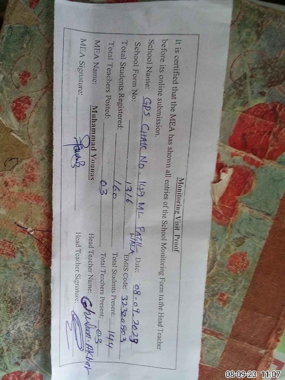 | EMIS Code: 32320803 | Name of School: GPS CHAK NO. 149/ML (FAZIL WALA) | |||