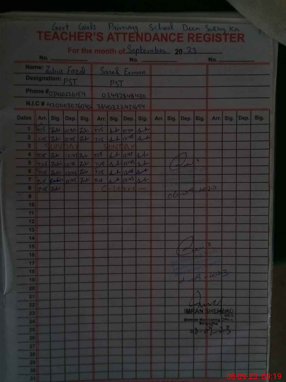 | Name: ZO**** FA**** Designation: (School Headmaster's/Headmistress's) PST Phone/Cell Number: 03**** |