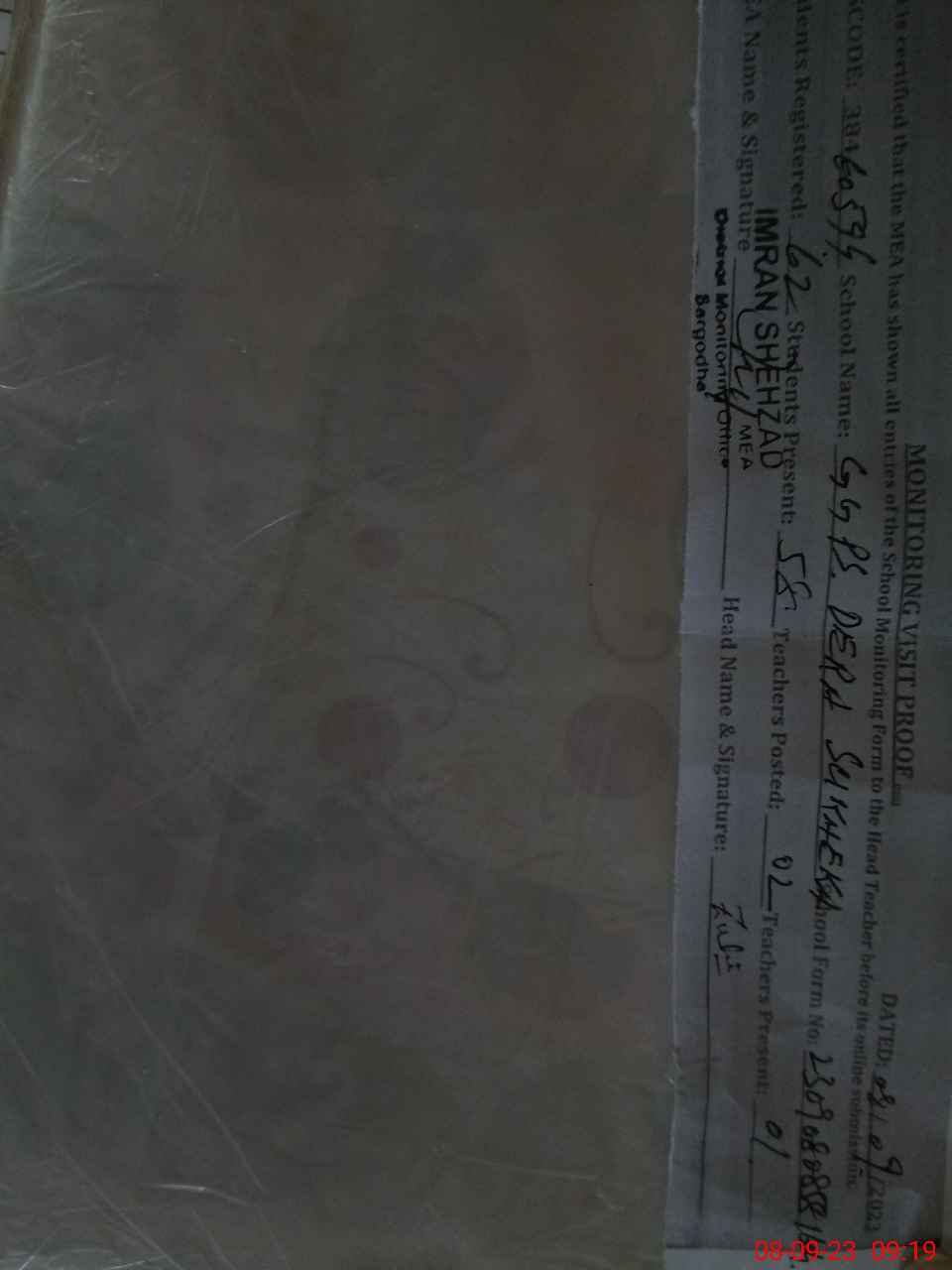 | Monitoring Date: 08-09-2023 | Start Time: 08-09-2023 08:58 AM | End Time: 08-09-2023 09:20 AM | Name of MEA: IM**** SH**** | |