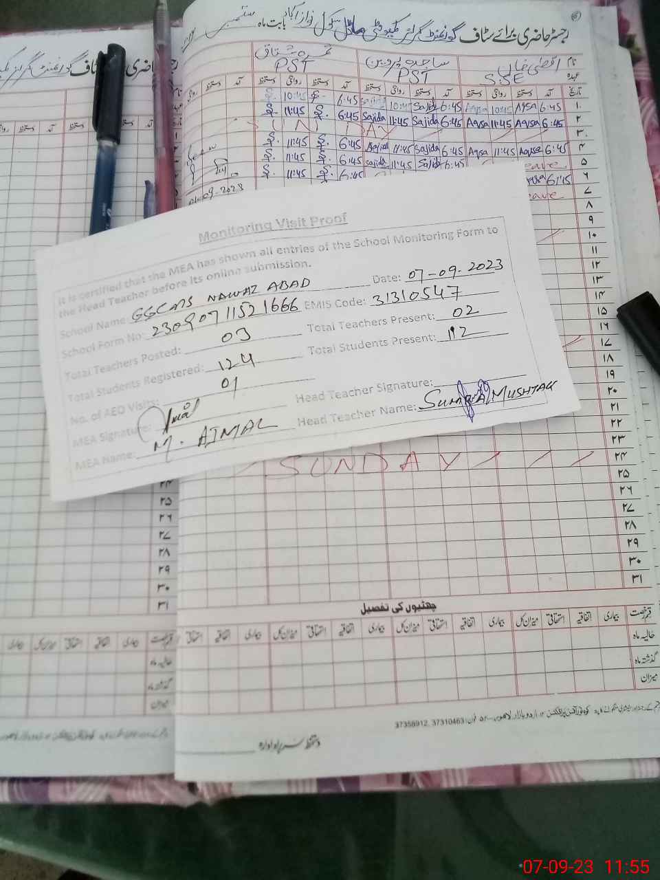 | EMIS Code: 31310547 | Name of School: GGCMS NAWAZ ABAD (After Noon) | |||