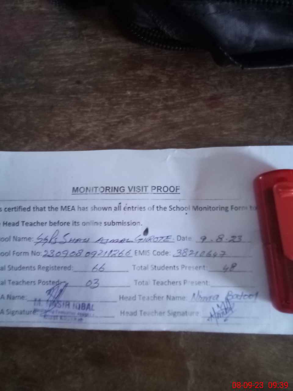| EMIS Code: 38210647 | Name of School: GGPS SHAH AJMAL GIROTE | |||