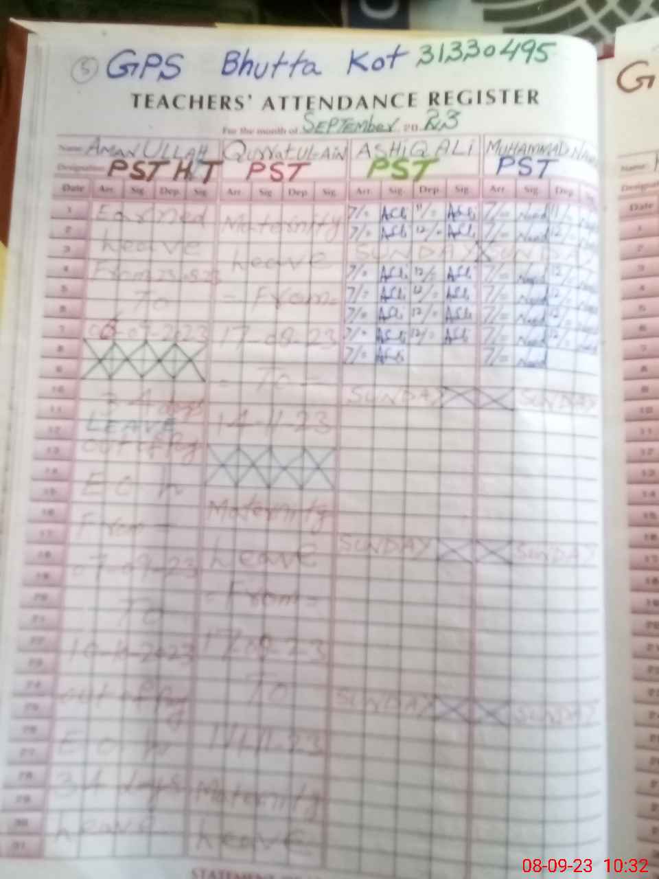 | 31**** | Am**** Ul**** | ESE | Contract | 0 | 0 | 0 | 0 | 0 | 0 | 0 | 0 | 0 | Absent (Un-Authorized) |