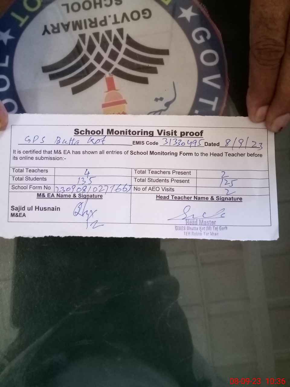 | Attendance Register | Head Teacher | MEA with School | Visit Proof |