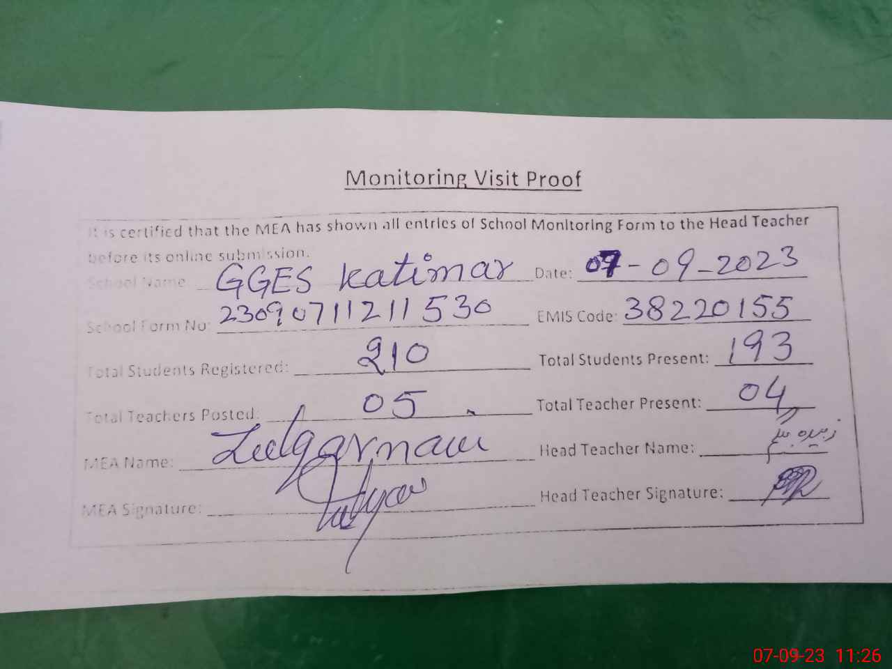 | EMIS Code: 38220155 | Name of School: GGES KATIMAR | |||