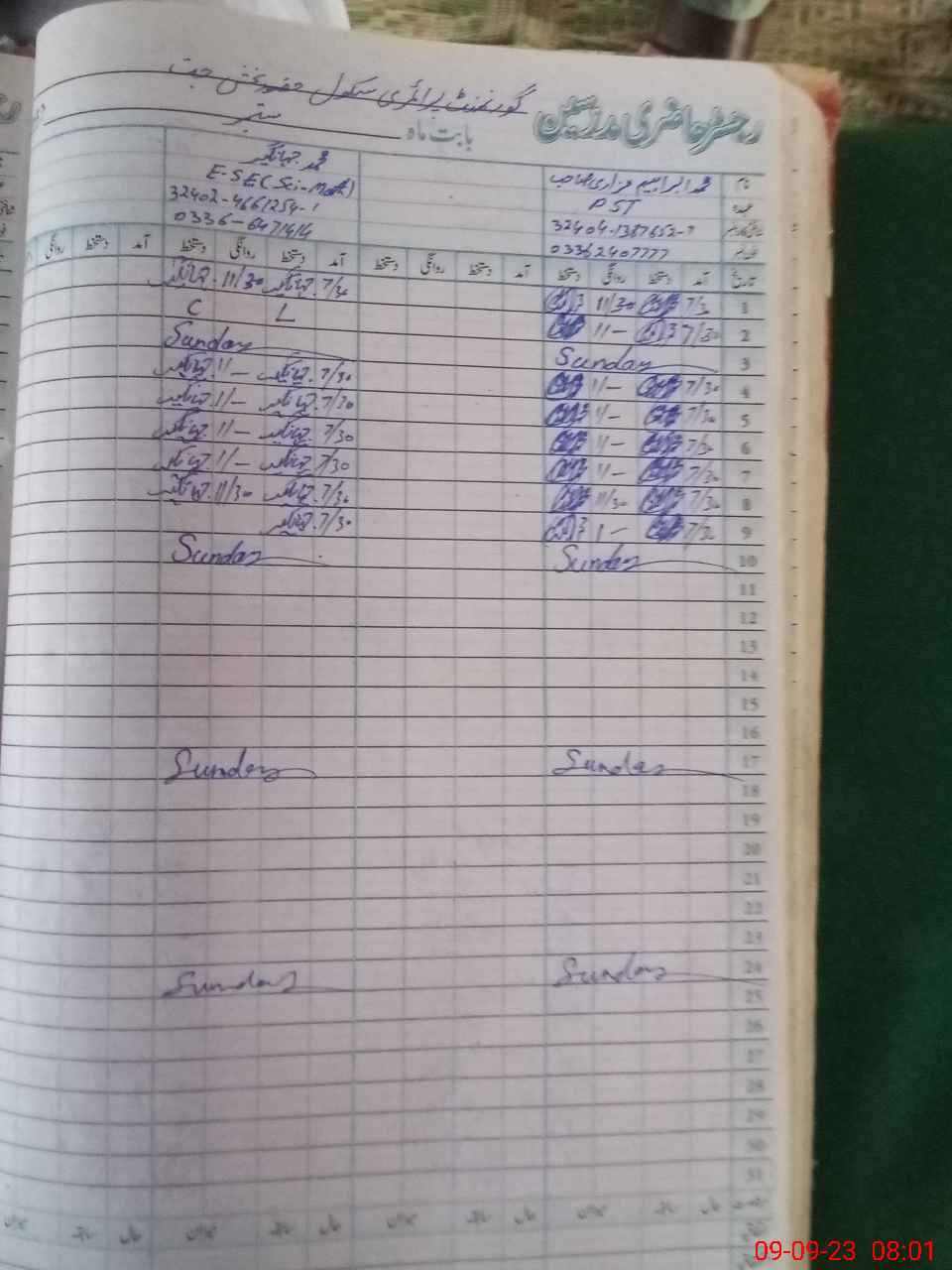 | Name: MU**** IB**** Designation: (School Headmaster's/Headmistress's) PST Phone/Cell Number: 03**** |
