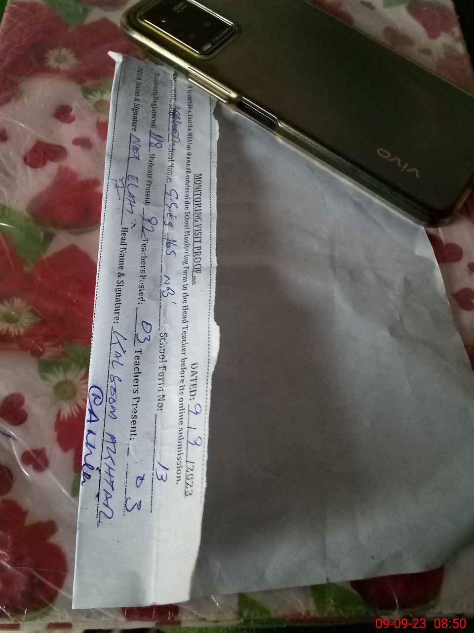 | Attendance Register | Head Teacher | MEA with School | Visit Proof |