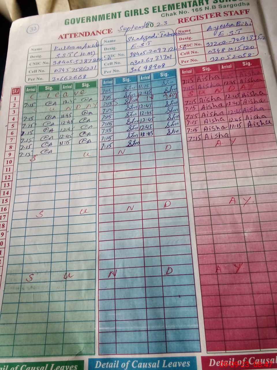 | CNIC | Full Name | Designation | R/C | Absence During Last Calender Month |