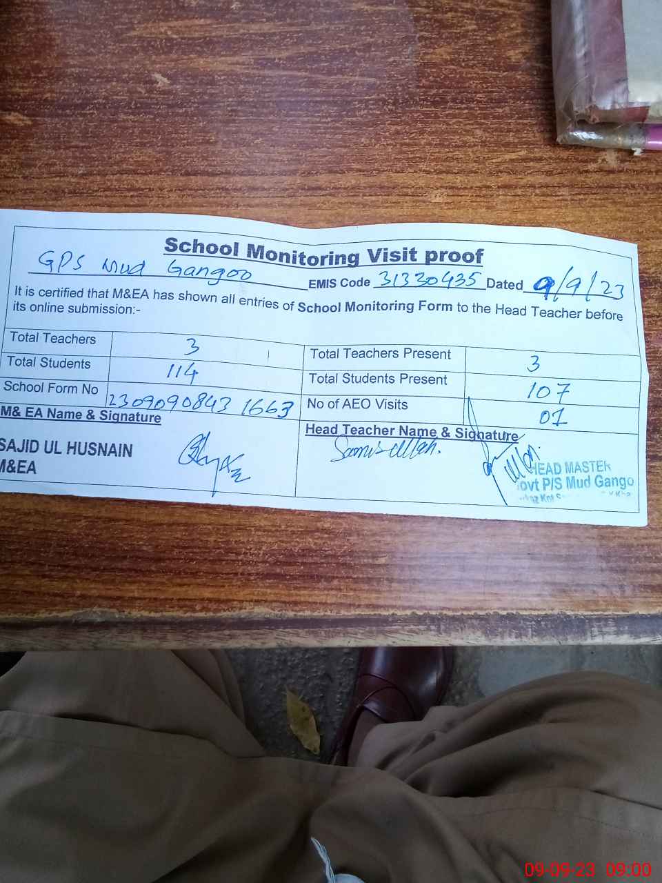| EMIS Code: 31330435 | Name of School: GPS MUD GANGOO | |||