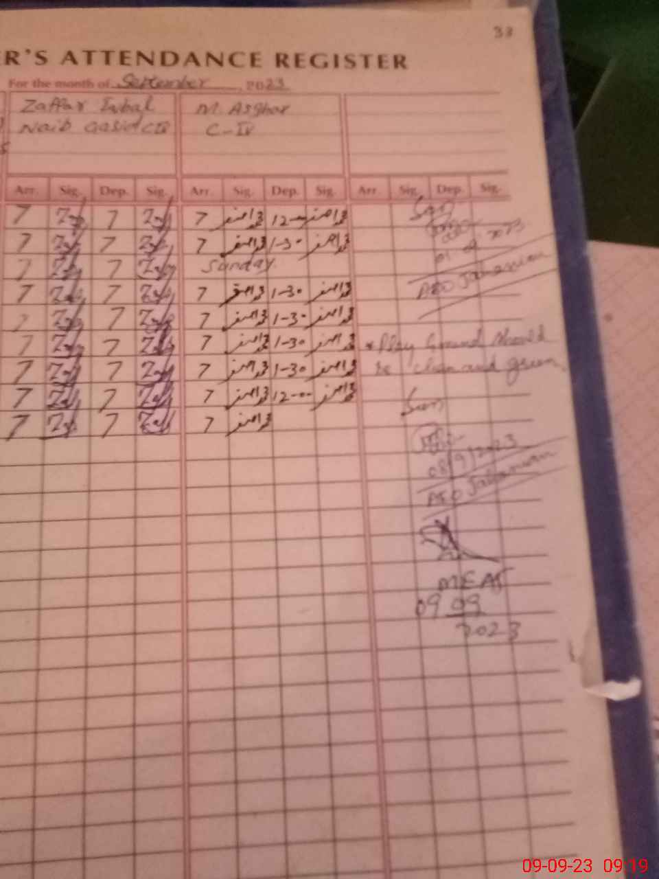 | Monitoring Date: 09-09-2023 | Start Time: 09-09-2023 08:12 AM | End Time: 09-09-2023 09:20 AM | Name of MEA: Ab**** Ja**** (S**** 20**** | |
