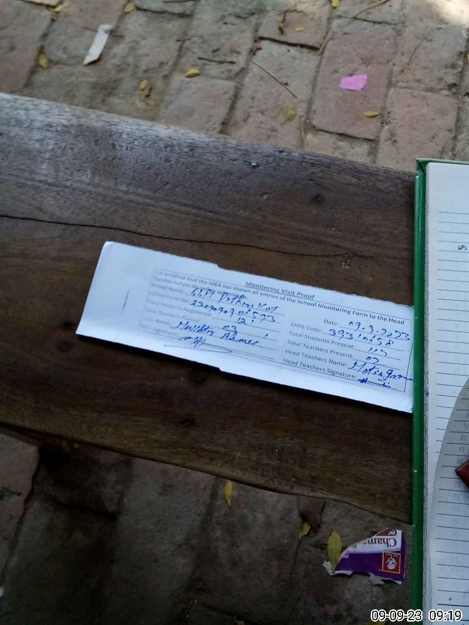 | Attendance Register | Head Teacher | MEA with School | Visit Proof |