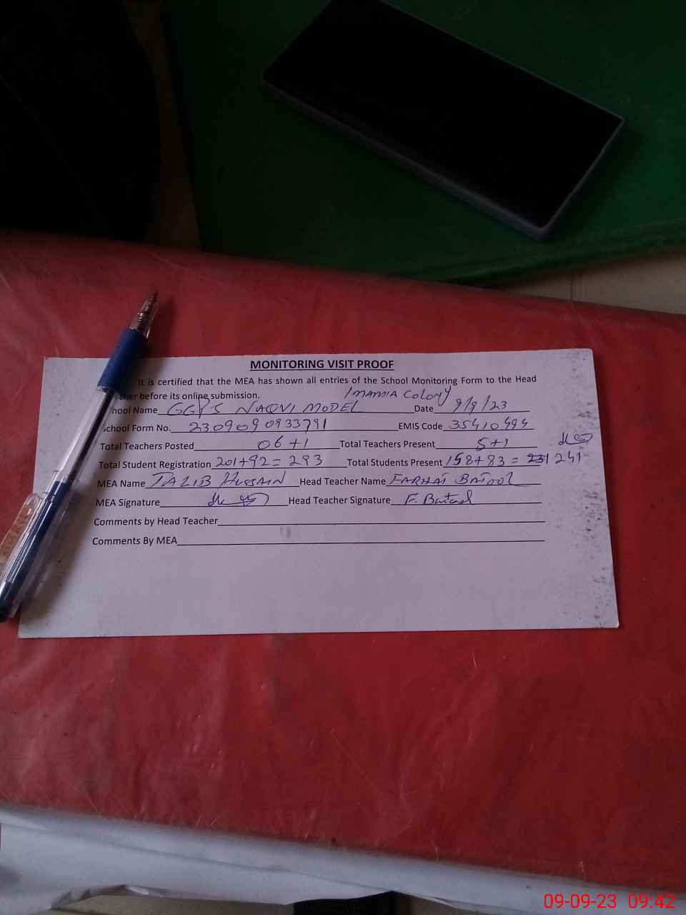 | EMIS Code: 35410494 | Name of School: GGPS NAQVI IMAMIA COLONY | |||
