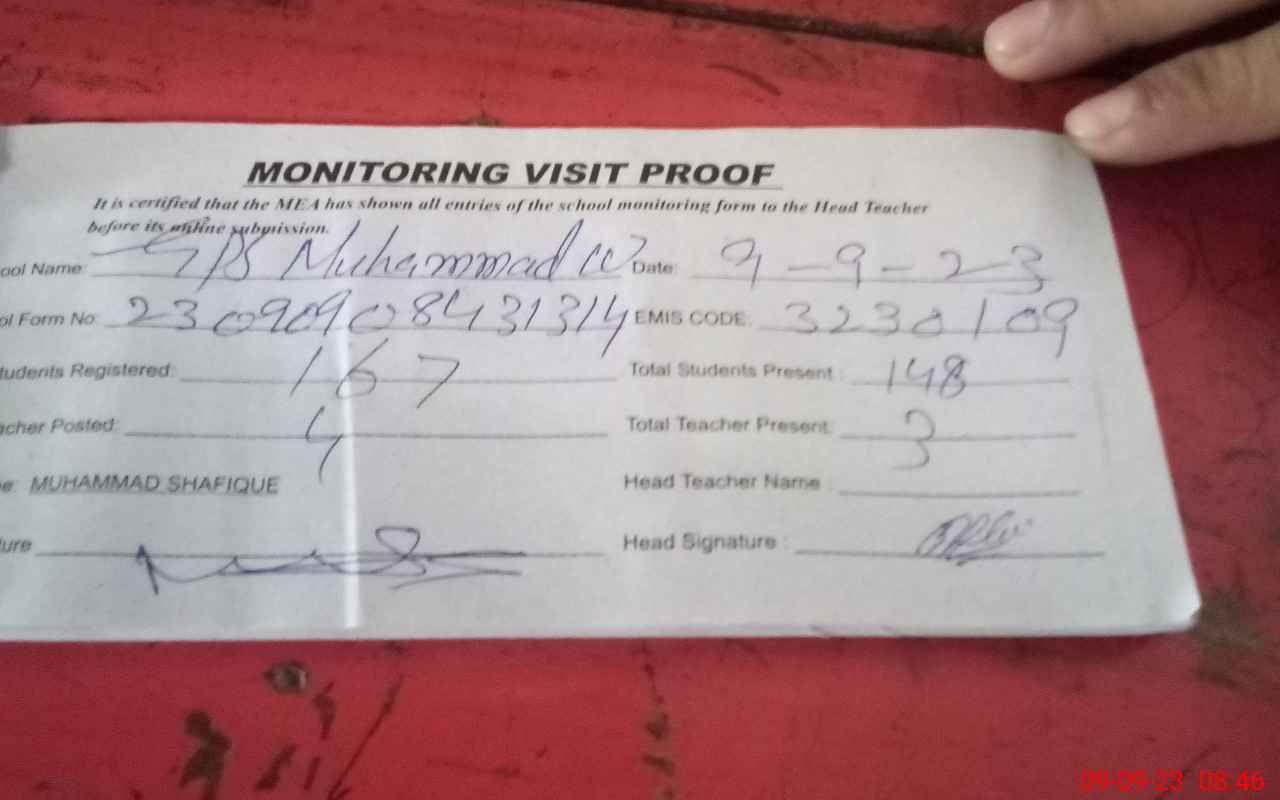 | Attendance Register | Head Teacher | MEA with School | Visit Proof |