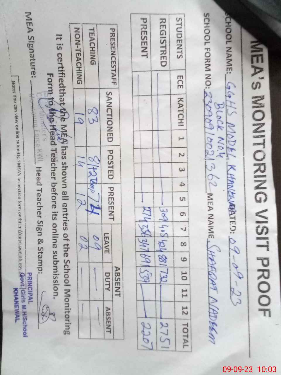 | EMIS Code: 36420044 | Name of School: GGHS MODEL KHANEWAL, BLOCK NO.4 LINE 3, KHANEWAL | |||