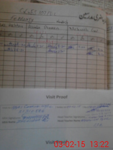 | Attendance Register | Head Teacher | MEA with School | Visit Proof |