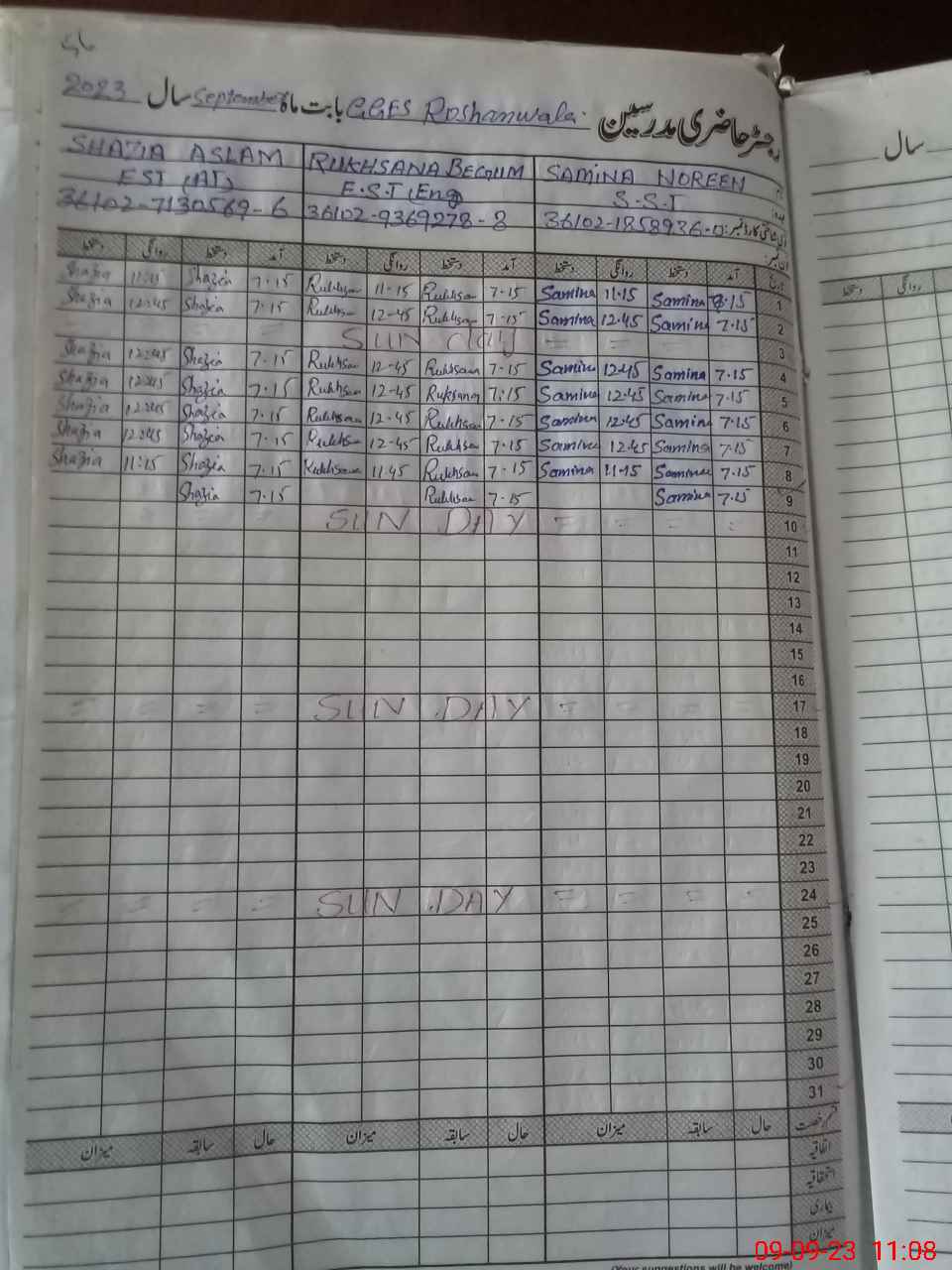 | Name: SA**** NA**** Designation: (School Headmaster's/Headmistress's) S.S.T.(G) Phone/Cell Number: 03**** |