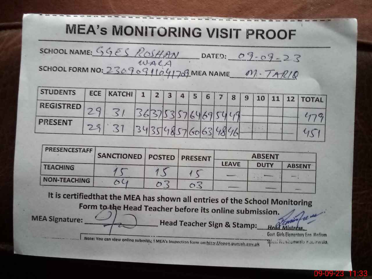 | EMIS Code: 36410333 | Name of School: GGES ROSHAN WALA, KABIRWALA | |||