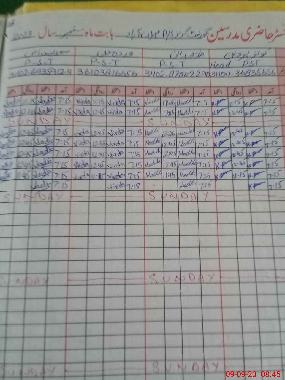 | Name: Sa**** Ab**** Designation: (School Headmaster's/Headmistress's) PST Phone/Cell Number: 03**** |
