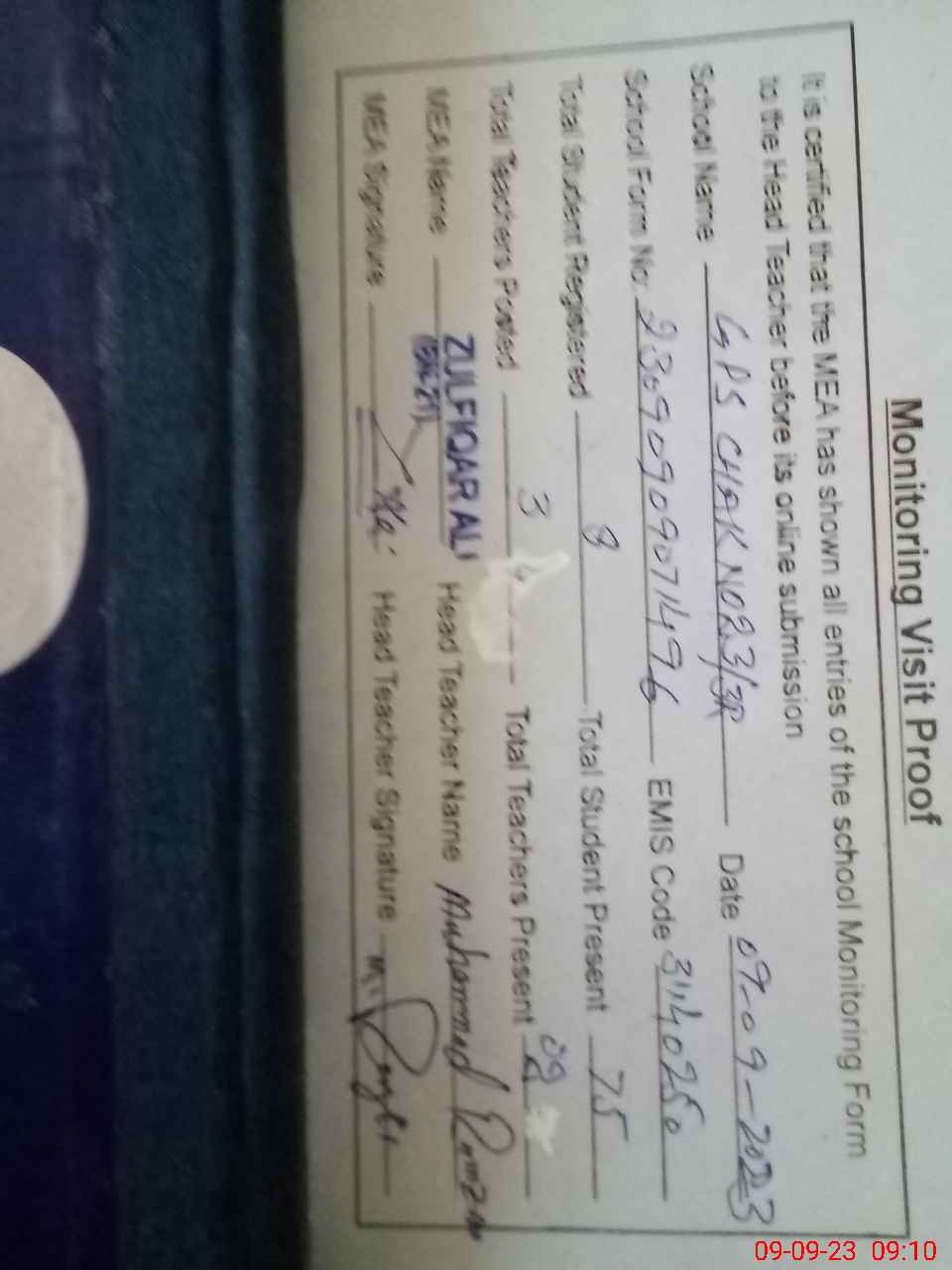 | EMIS Code: 31140250 | Name of School: GPS CHAK NO 23/3-R | |||