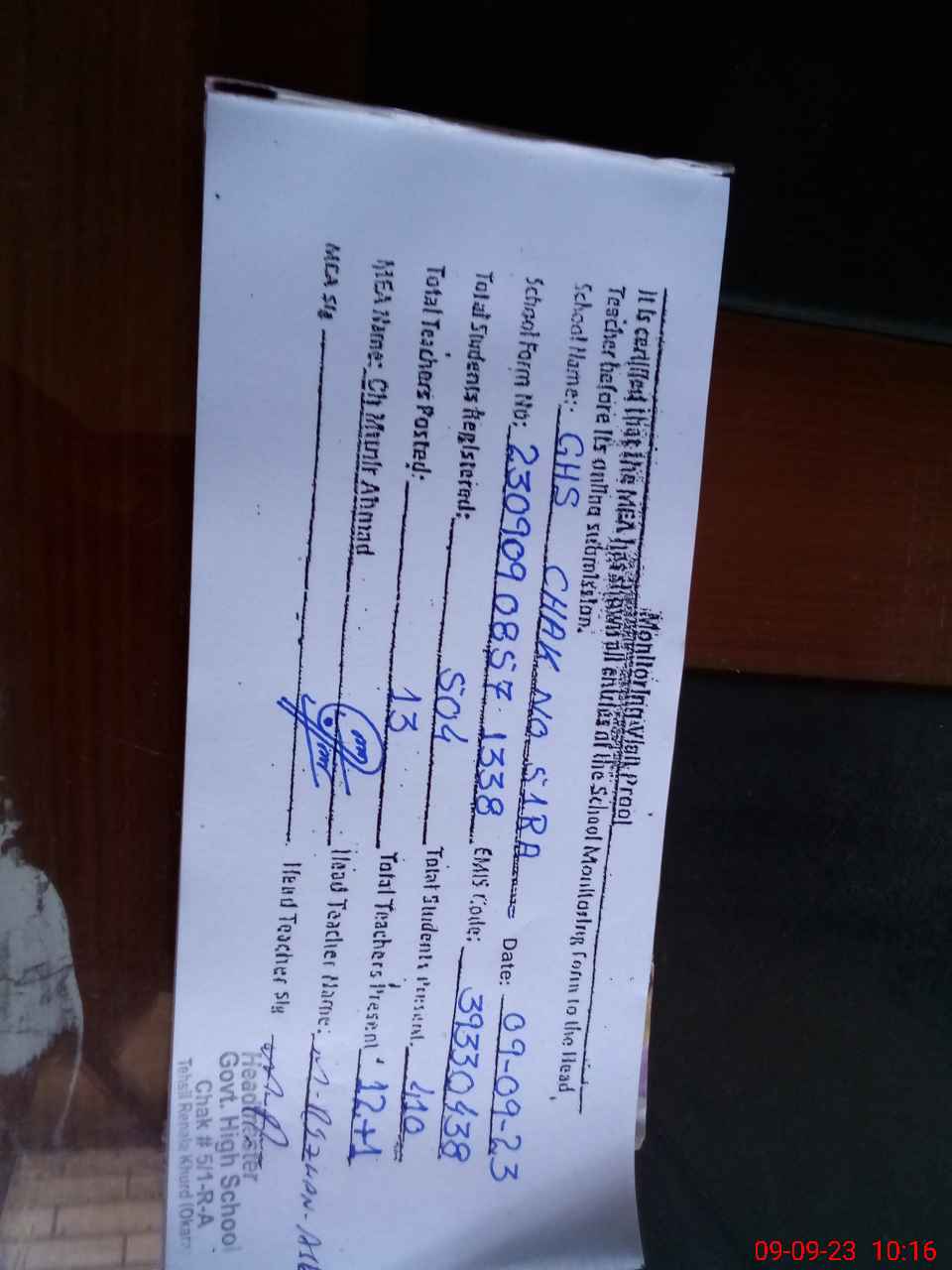 | Name: Mu**** Ra**** As**** Designation: (School Headmaster's/Headmistress's) SSE Phone/Cell Number: 03**** |
