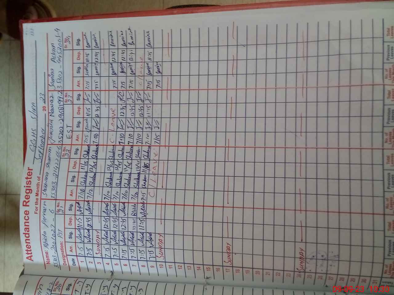 | CNIC | Full Name | Designation | R/C | Absence During Last Calender Month |
