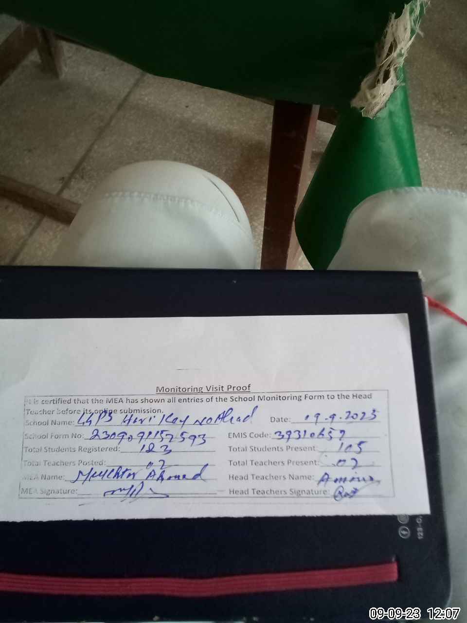| Attendance Register | Head Teacher | MEA with School | Visit Proof |