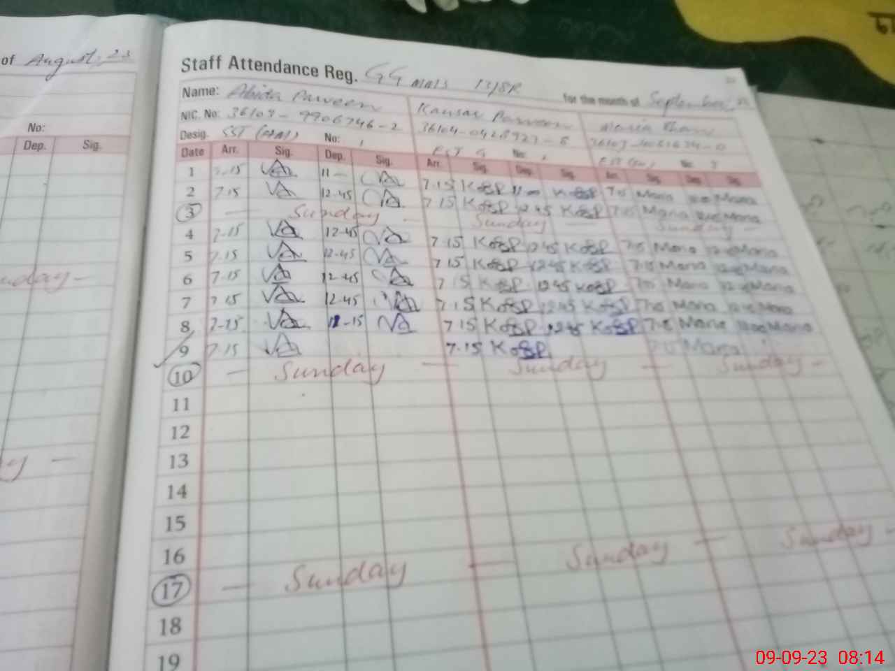 | Remarks (Use Separate Page if Required): Note NO AEO VISIT IN THE MONTH OF AUGUST 2023 | |||||