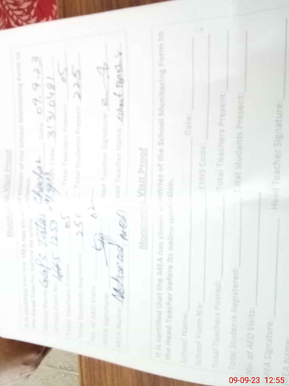 | Attendance Register | Head Teacher | MEA with School | Visit Proof |