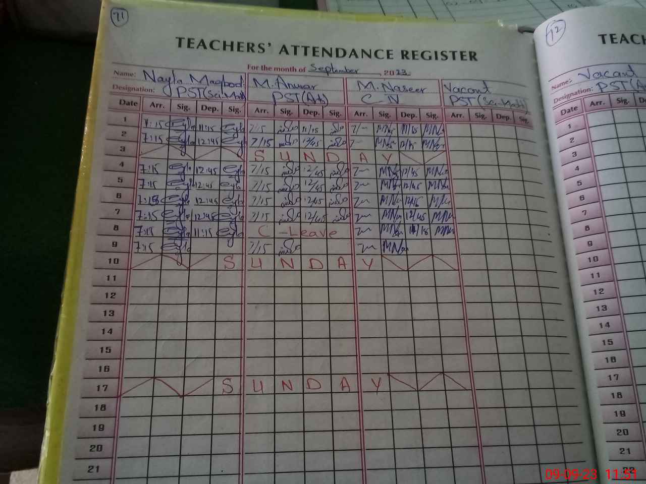 | Name: Na**** Ma**** Designation: (School Headmaster's/Headmistress's) PST (SCI-MATH) Phone/Cell Number: 03**** |