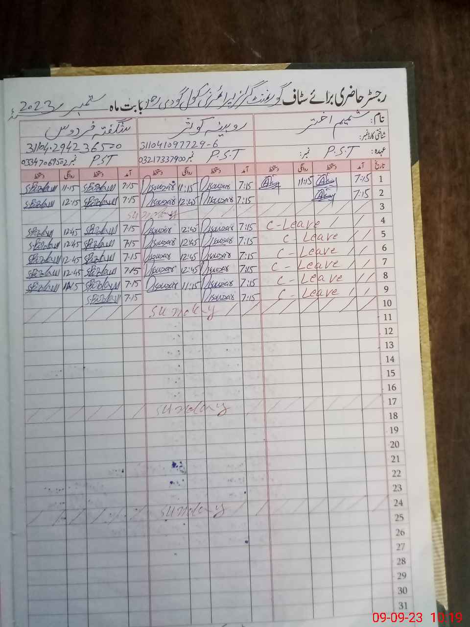 | Name: Sh**** Ak**** Designation: (School Headmaster's/Headmistress's) PST Phone/Cell Number: 03**** |