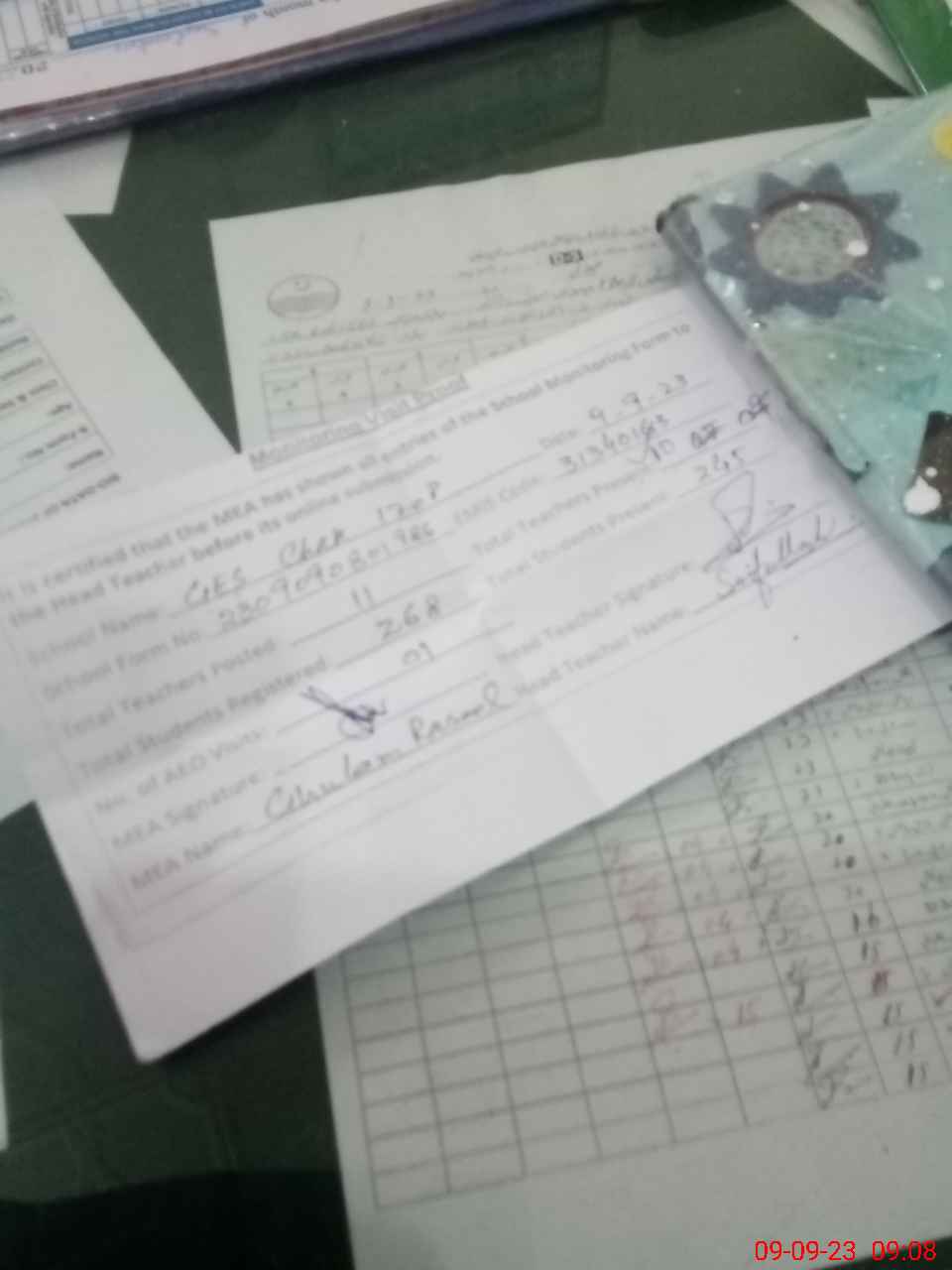 | Attendance Register | Head Teacher | MEA with School | Visit Proof |