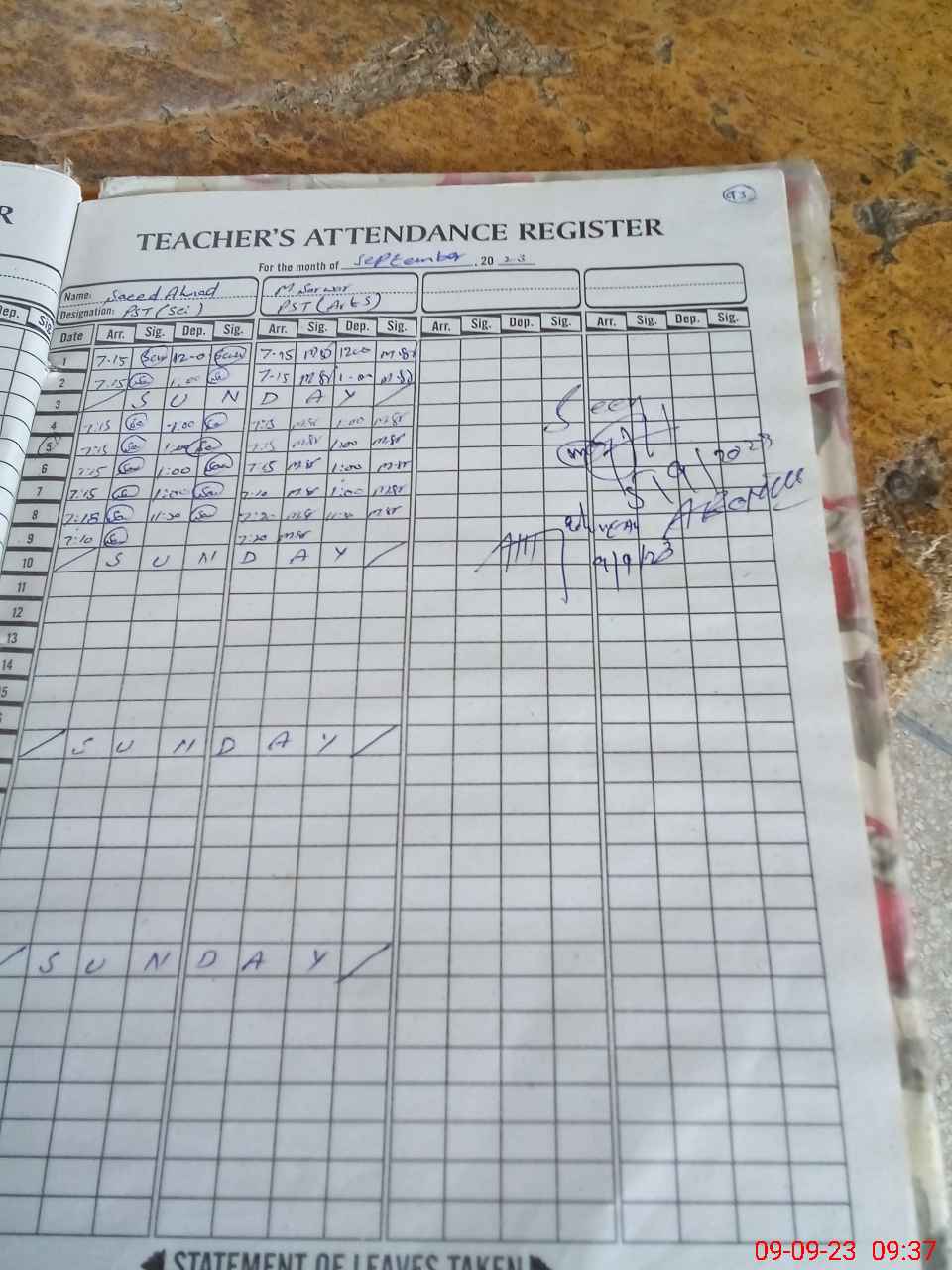 | Name: SH**** Designation: (School Headmaster's/Headmistress's) PST Phone/Cell Number: 03**** |