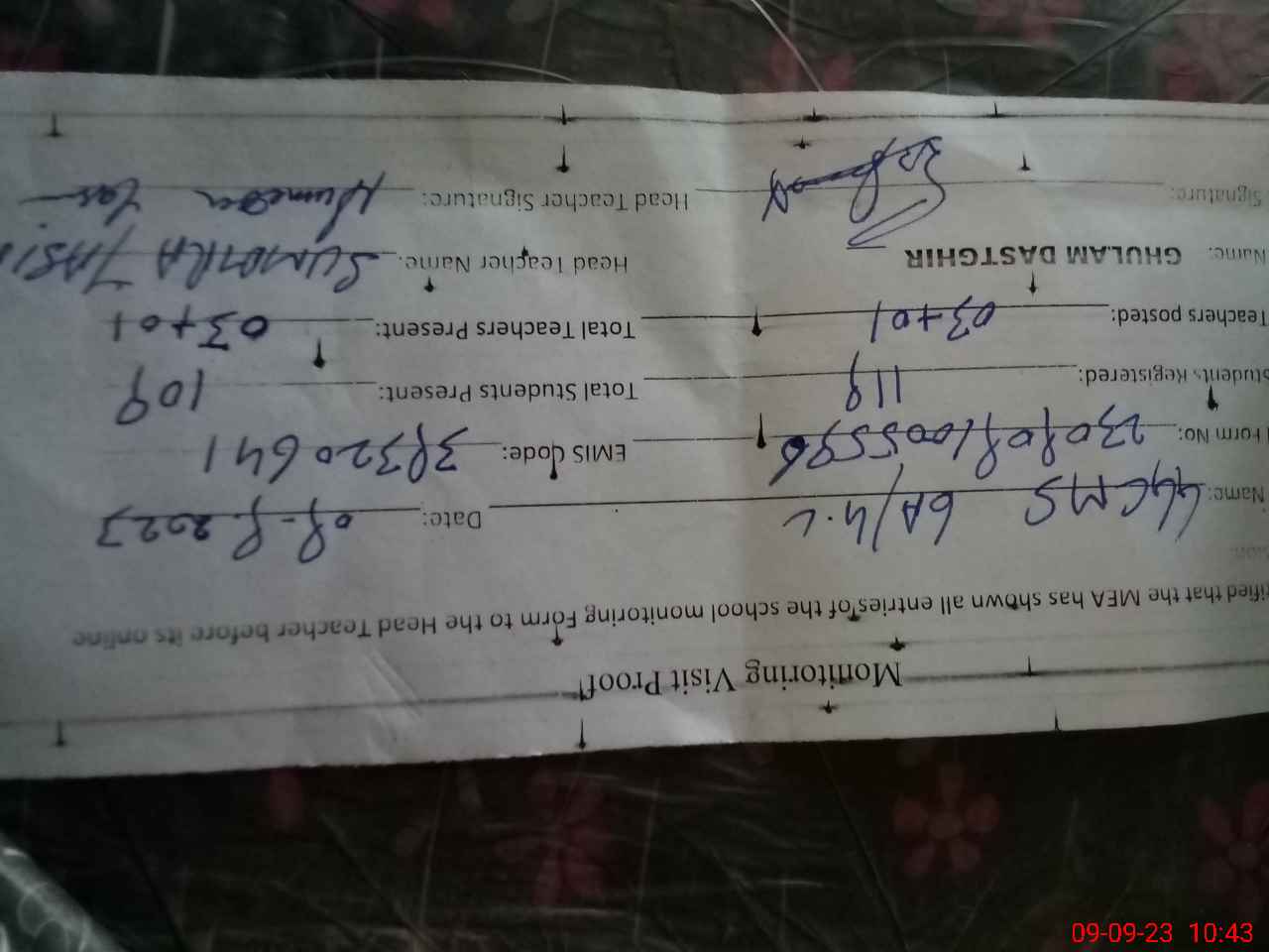 | Name: Sa**** Za**** Designation: (School Headmaster's/Headmistress's) PST Phone/Cell Number: 03**** |