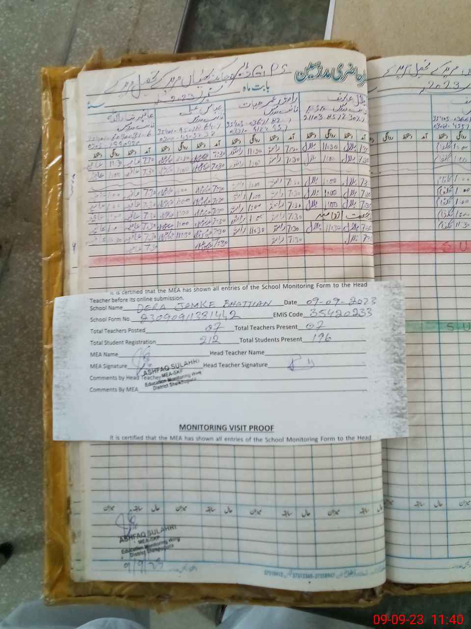 | Attendance Register | Head Teacher | MEA with School | Visit Proof |