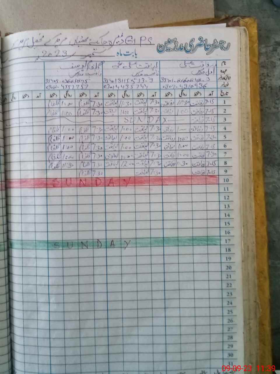 | CNIC | Full Name | Designation | R/C | Absence During Last Calender Month |