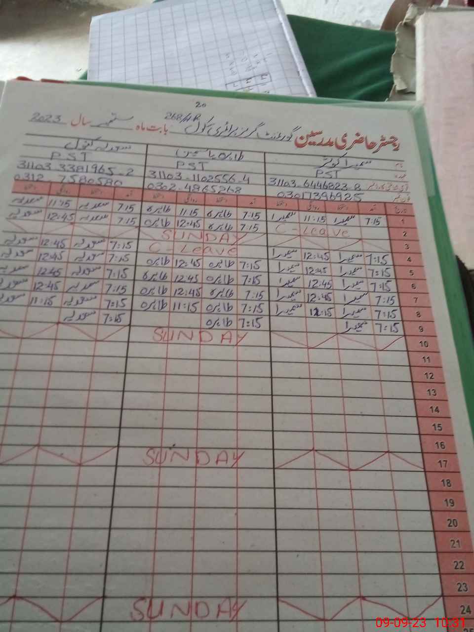 | CNIC | Full Name | Designation | R/C | Absence During Last Calender Month |