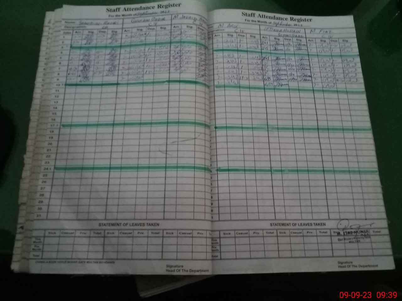 | CNIC | Full Name | Designation | R/C | Absence During Last Calender Month |