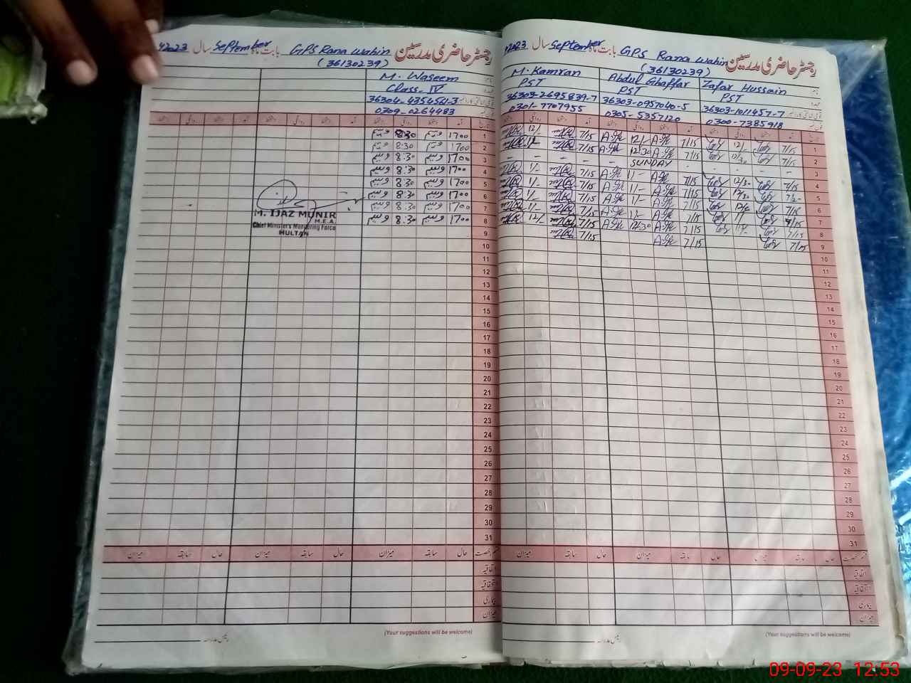 | Name: MKa**** Designation: (School Headmaster's/Headmistress's) PST Head Phone/Cell Number: 03**** |