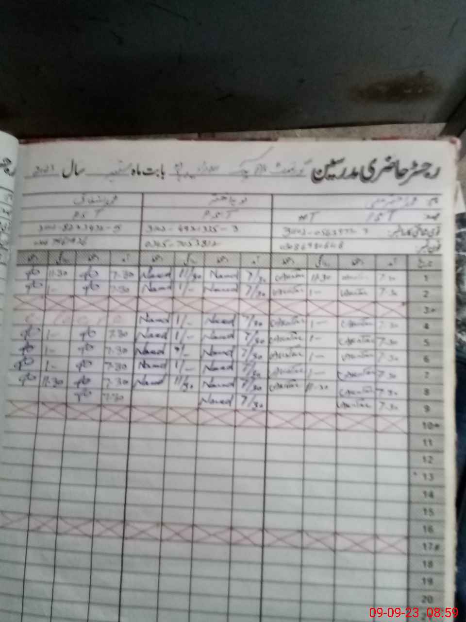 | CNIC | Full Name | Designation | R/C | Absence During Last Calender Month |