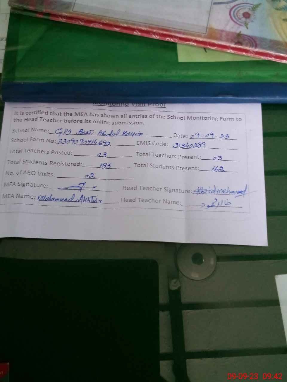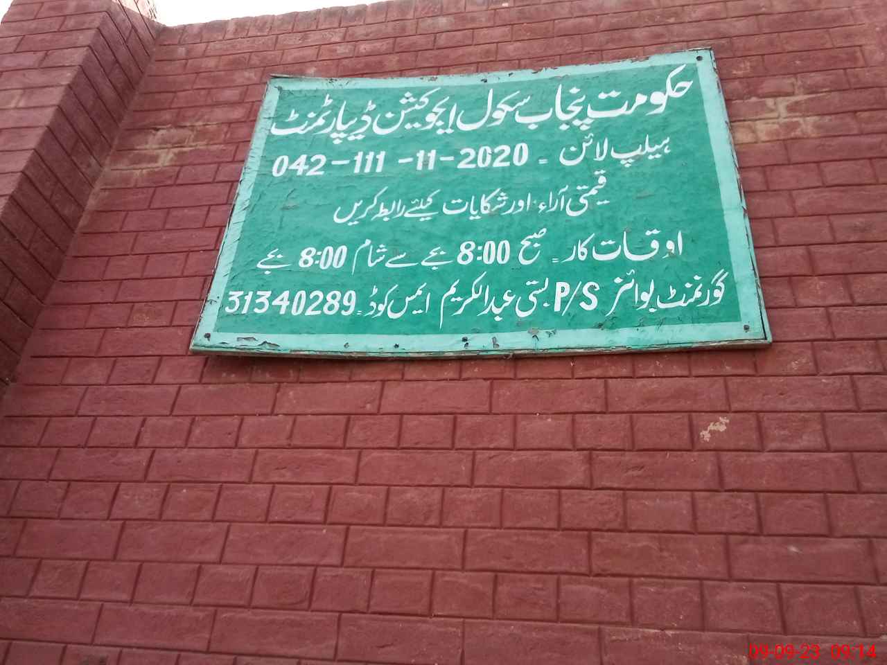 | EMIS Code: 31340289 | Name of School: GPS BASTI ABDUL KARIM | |||