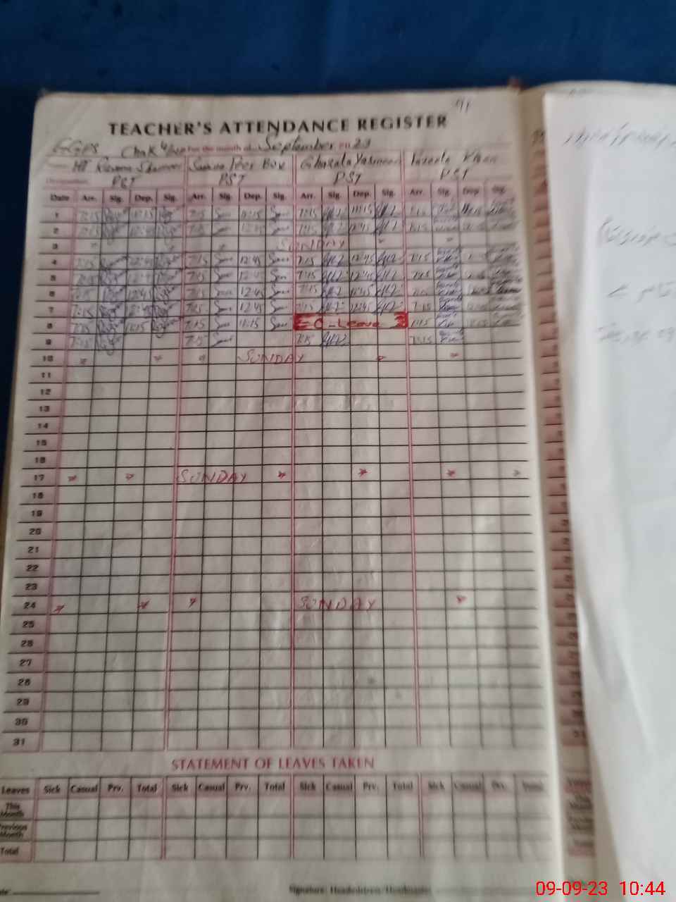 | 31**** | Sa**** At**** Ra**** Sh**** | CHOWKEDAR | Regular | 0 | 0 | 0 | 0 | 0 | 0 | 0 | 0 | 0 | Casual |