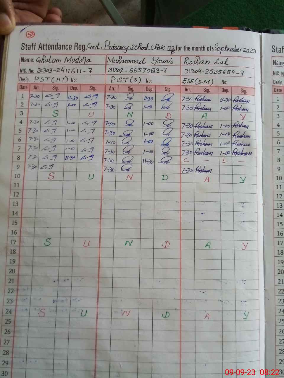 | CNIC | Full Name | Designation | R/C | Absence during last cal. month |